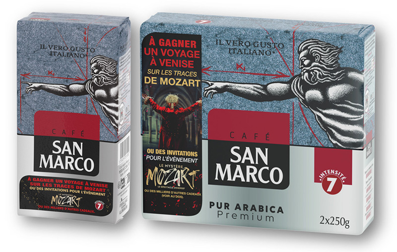 À l’occasion de l’année Mozart, SAN MARCO invite les amateurs de café à savourer les plus belles œuvres du compositeur et à tenter de remporter de nombreux lots. En jeu notamment : des invitations pour Le Mystère Mozart, spectacle-événement coproduit par TF1 Spectacles et France Télévisions ; un parcours musical et théâtral en huit tableaux, hommage immersif à l’univers vibrant et intemporel du génie autrichien.