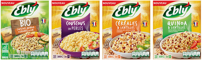 En 2018, pour fêter ses 30 ans, Ebly® lance 4 nouvelles recettes à base de céréales prêtes à cuire le Couscous en perles : un produit inédit en France, un couscous à gros grains sous forme de perles pour une texture fondante et ronde en bouche, deux Mélanges de Céréales & Lentilles : Céréales & Lentilles : Couscous, Blé, lentilles corail et blondes et Quinoa & Lentilles : Quinoa blanc et rouge, couscous et lentilles vertes et une offre bio inédite le mélange de Céréales Couscous, Quinoa noir et Graines de lin.