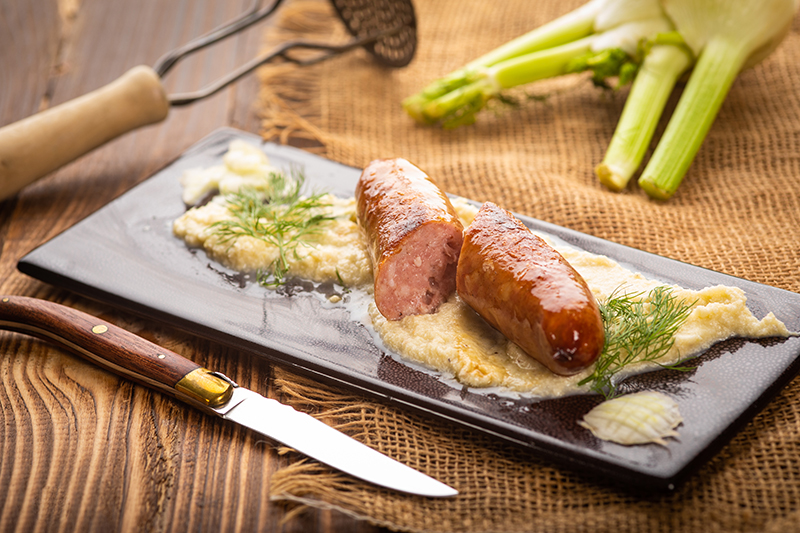 Saucisse de Montbéliard IGP grillée à la mousseline de fenouil