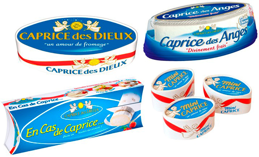 Ce fromage est également commercialisé en portions individuelles (Mini Caprice), petits plaisirs, goûter, apéritif, salade, plateau TV (En Cas de Caprice)