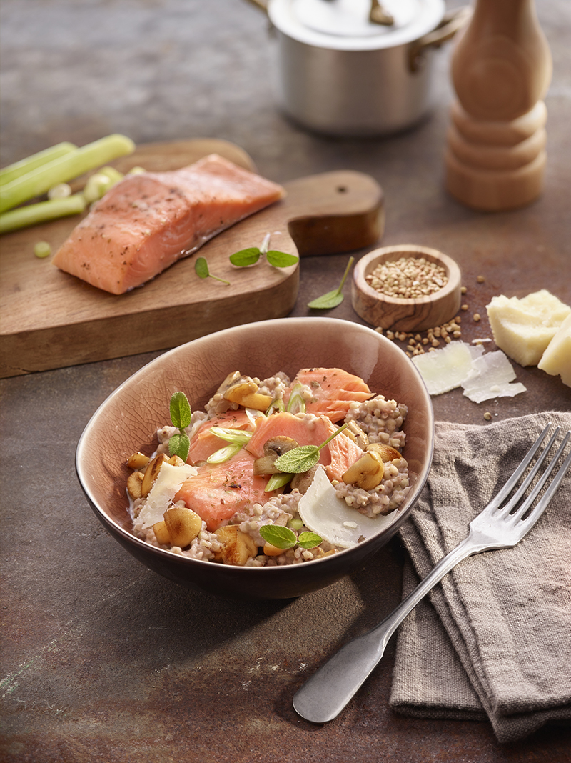 Saumon Traiteur mi-cuit et risotto de sarrasin aux légumes de saison