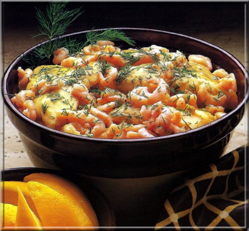 4-Mélanger la crème avec la moutarde. Verser dans la sauteuse ainsi que le vin. Remuer pour mélanger avant d'ajouter les crevettes. Réchauffer en remuant, en veillant à ne pas atteindre l'ébullition. Décorer d'aneth et servir avec les quartiers de citron.