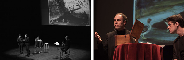Ils proposent une discussion improvisée avec le public accompagné d'un saxophoniste.
