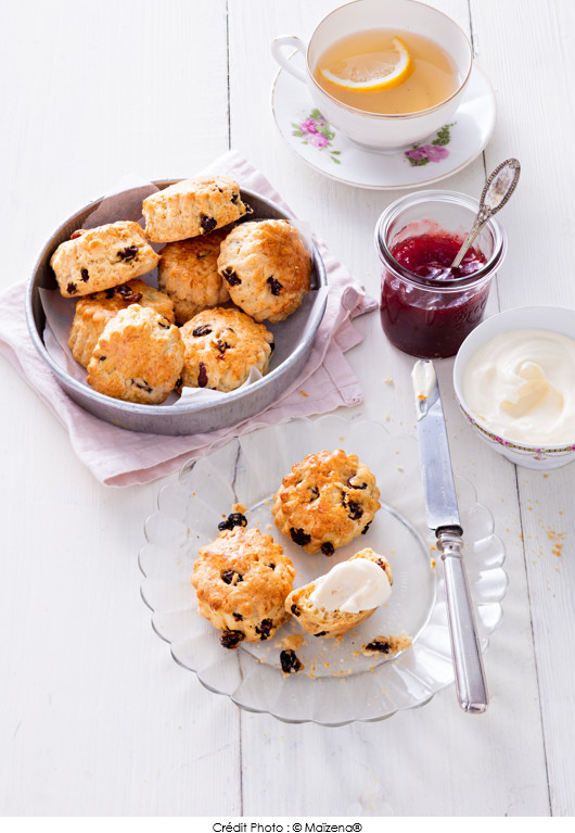 Dégustez les scones tièdes avec de la crème fraiche et de la confiture.