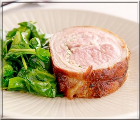 Coupez délicatement la selle en tranches, faites fondre rapidement le reste des épinards dans le jus de cuisson et servez aussitôt.