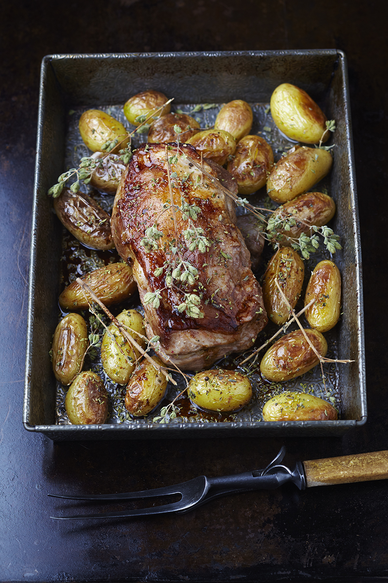 Selle d’agneau rôtie à l’origan, pommes grenailles à la peau