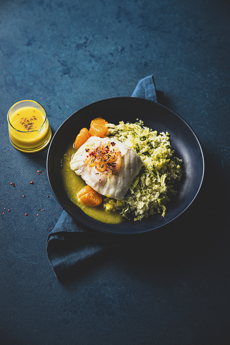 Dans cette recette, le Skrei de Norvège est accompagné par un fruit de saison, la mandarine, pour une association hivernale sucrée-salée originale et savoureuse. Les sucs de cuisson du poisson viennent rehausser cette sauce légèrement acidulée pour en décupler les saveurs.