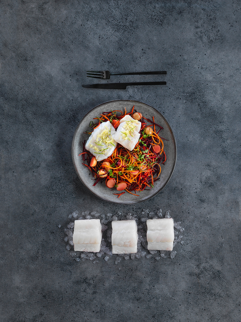 Assurez-vous de manger le Skrei Norvégien quand il est ici ! Cette délicatesse de saison se marie parfaitement avec un monde de saveurs. Essayez ce délicieux dîner au citron vert, au gingembre et à la betterave – un repas sain et délicieux.