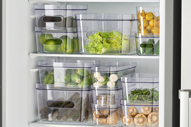Le gaspillage alimentaire représente 10 millions de tonnes de produits par an ! Organiser son réfrigérateur de manière optimale évite ce gaspillage. La gamme Compact Clear de SmartStore™, composée de boîtes de rangement transparentes avec poignées intégrées, permet une vision rapide et globale des aliments à consommer. Modulable et empilable, proposée dans différentes tailles, chaque boîte permettra de stocker une catégorie d’aliments spécifiques ; fruits, légumes, yaourts, viandes ou poissons, une boîte par catégorie est essentiel !