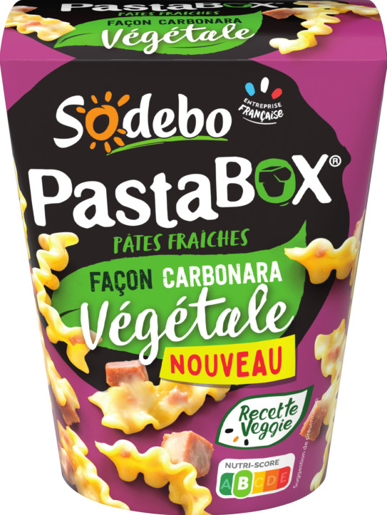 Créée en 2009, les Pastabox devenues aujourd’hui iconiques, créent à nouveau la surprise avec cette offre façon carbonara sans viande. Une recette inédite et gourmande imaginée non pas avec des lardons classiques, mais avec des émincés végétaux élaborés à partir de matières 100% naturelles. Le tout transformé dans nos ateliers en Vendée !