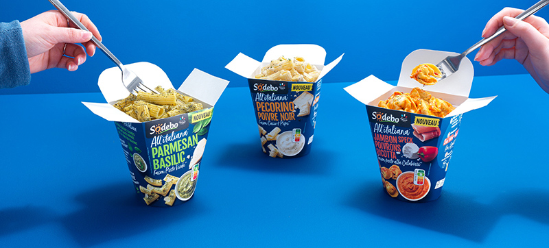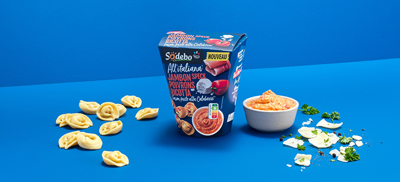 Sodebo ravit les papilles des Français avec des ingrédients soigneusement sélectionnés pour leur goût et cuisinés dans les ateliers de Saint-Georges-de-Montaigu. Les recettes inspirées d'Italie, au Nutriscore B ou C, combinent équilibre nutritionnel et plaisir gustatif notamment avec des pâtes fraîches et des sauces fabriquées dans ces mêmes ateliers.