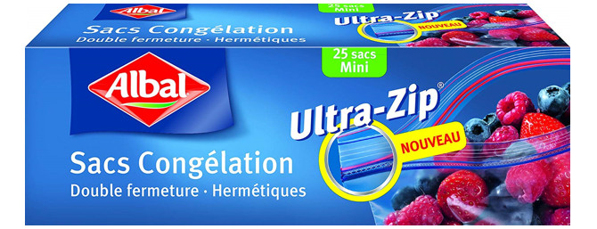 Les sacs congélation Ultra-Zip® d'Albal protègent parfaitement la saveur et le goût des aliments congelés. Leur plastique résistant offre une protection idéale contre la formation du givre. La fermeture intégrée à zip est hermétique: facile à ouvrir et à fermer elle permet de prendre les portions qui conviennent. Les sacs sont dotés d'une fond plat pour un remplissage facile.