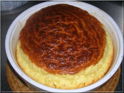 Beurrez un moule à soufflé, versez-y le mélange, et faites cuire à 180°C (th 6), 1/2 h environ.