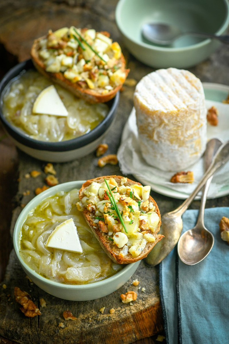 De la cour des Rois de France aux bols des bergers de nos montagnes, c’est encore aujourd’hui la recette de soupe la plus populaire que l’on aime partager pour se réchauffer jusqu’au cœur de la nuit, agrémentée d’une généreuse tartine aux saveurs caprines.