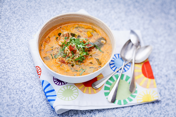 Vous pouvez servir cette soupe complète avec quelques brins d'herbes fraîches et des croûtons de pain.