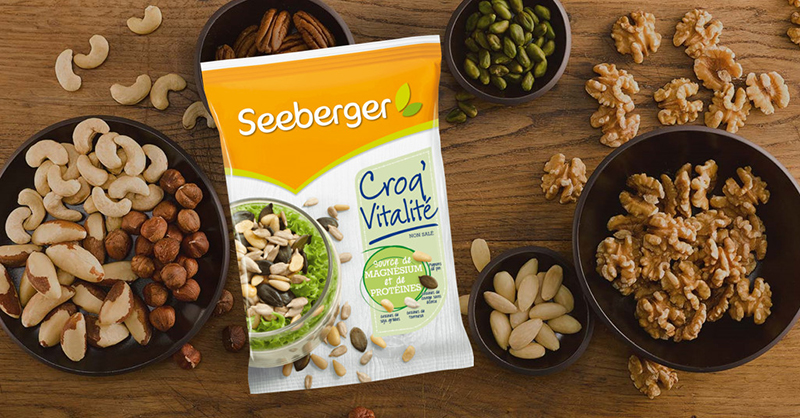 Issu de sa nouvelle gamme bio, Seeberger propose un nouveau mélange complet, naturellement riche en protéines grâce aux pousses de soja et aux amandes grillées qui le composent. Sources de vitamine E, les cranberries viennent compléter ce mariage de saveurs avec leur touche colorée et acidulée.