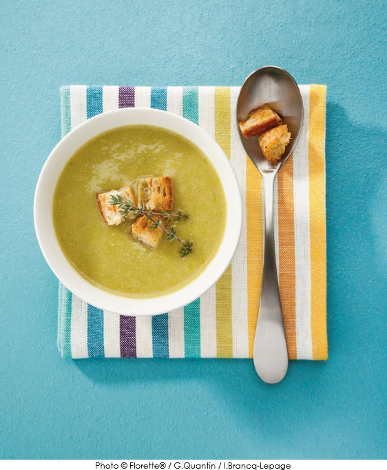 Servez aussitôt cette soupe accompagnée de croûtons.