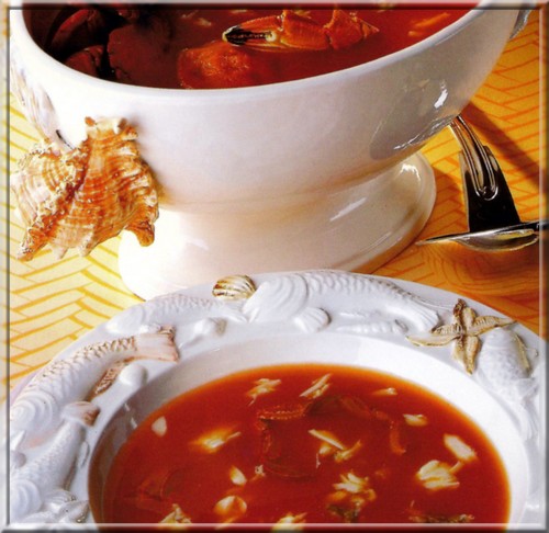 3-Ajouter les étrilles et laisser bouillonner doucement 5 min.Retirer les étrilles et pendant que la soupe continue à cuire,les éplucher,puis remettre la chair dans le bouillon.