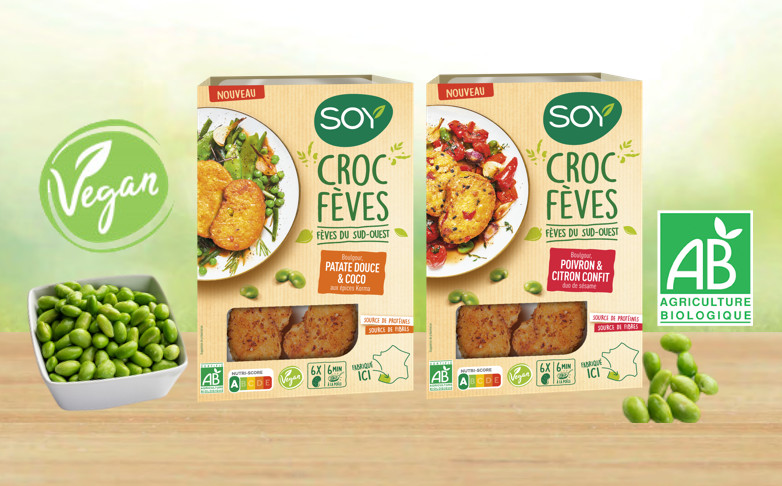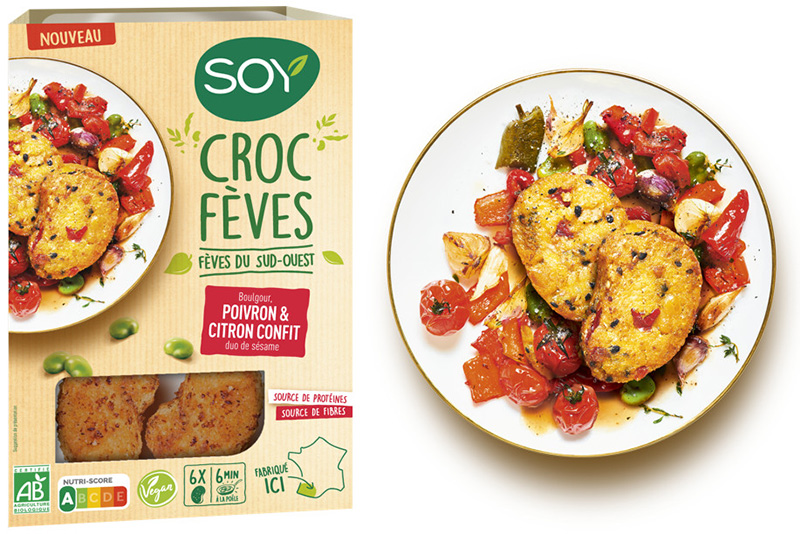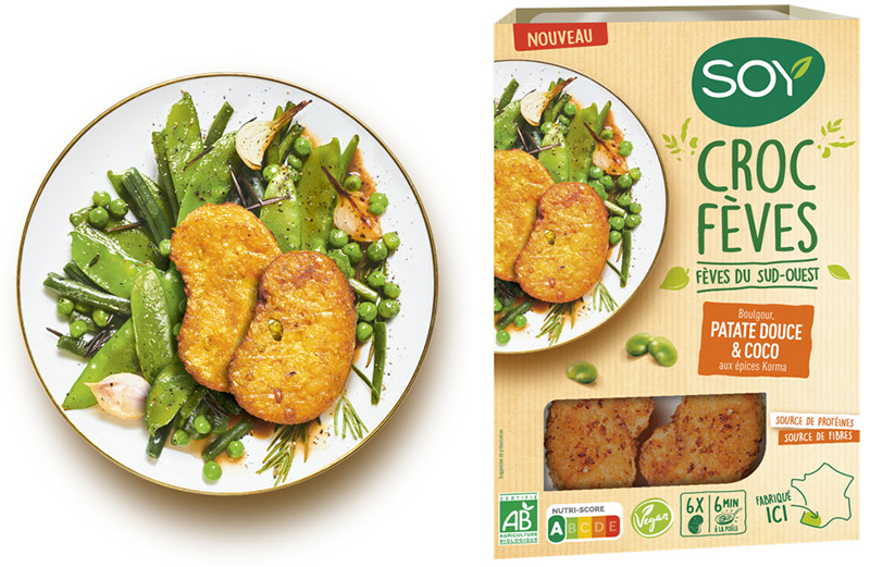 SOY vous invite à redécouvrir la fève avec les Croc Fèves, deux nouvelles recettes vegan, riches et parfumées, à la fois fondantes et fermes grâce à l’association du boulgour de blé et de la fève.