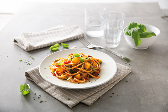 Spaghetti 3 Minuti à la sauce Basilico et aux légumes méditerranéens