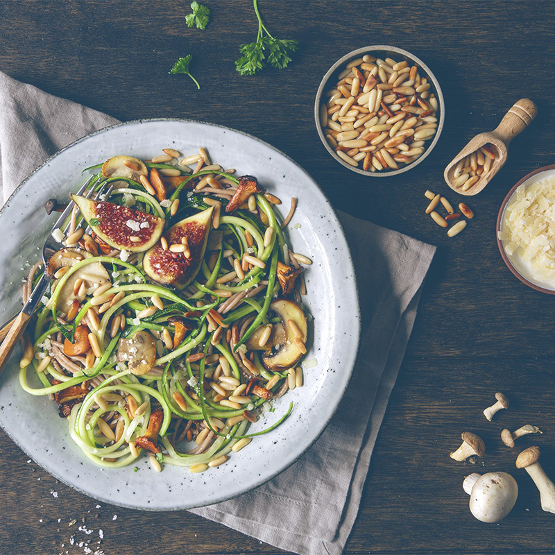 Alliez gourmandise et légèreté avec les spaghettis aux courgettes, champignons et pignons de pin.
