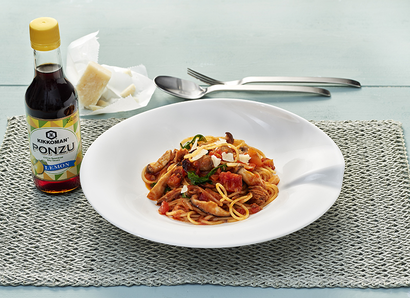 Pause repas à l'italienne avec ces spaghettis Ponzu avec du thon et des champignons.