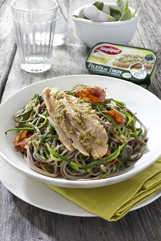Spaghettis soja et courgette Filets de thon Saveurs du Sud pesto au basilic