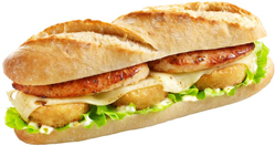 Le Brigitte, quant à lui, propose une tranche de poulet mariné, accompagné d'une galette de pomme de terre, d'emmental et d'une sauce tartare.