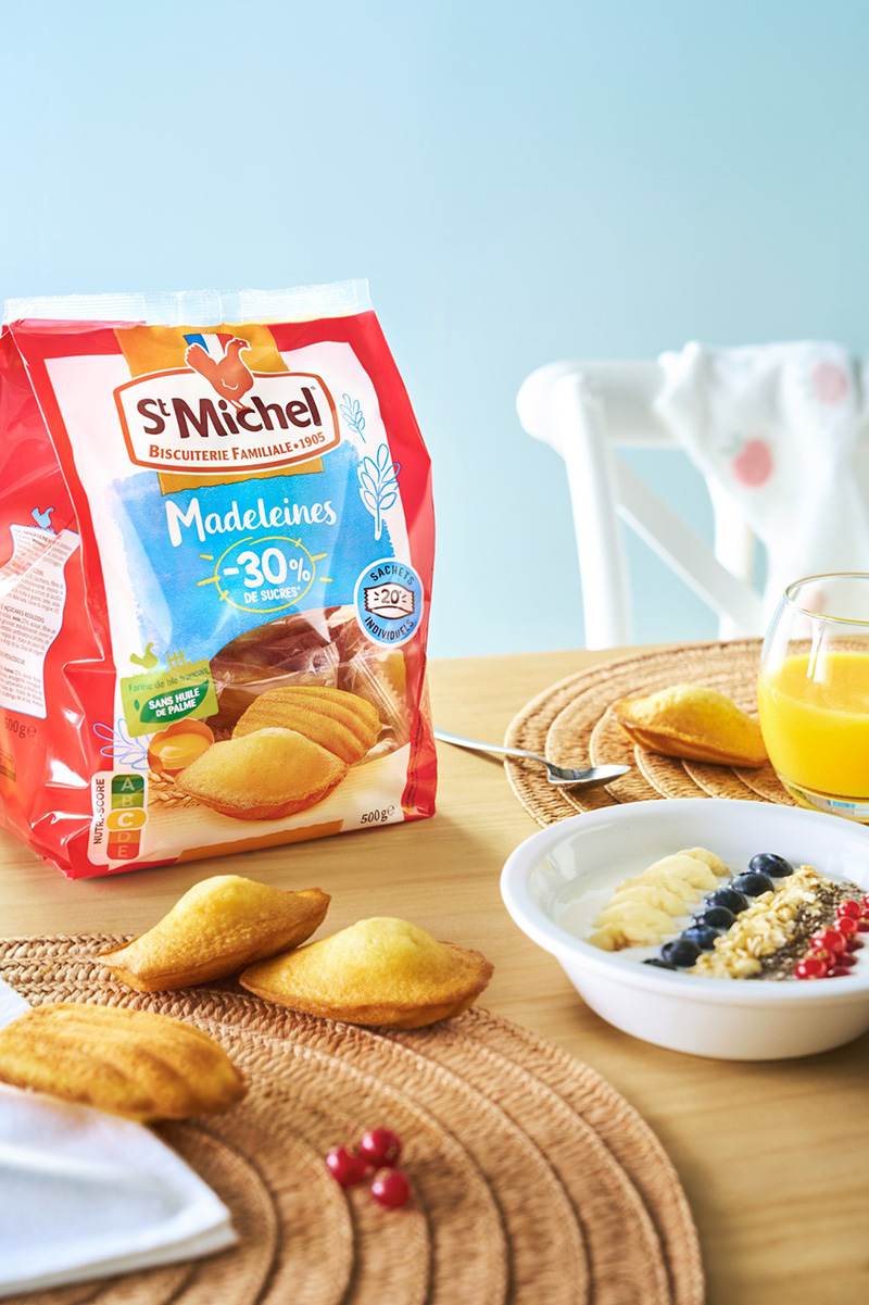 St Michel, la marque emblématique de la biscuiterie française, réinvente la pause gourmande avec une nouvelle madeleine individuelle -30% de sucres ! Une déclinaison de sa recette moelleuse et savoureuse dans un format individuel, pour des moments gourmands et équilibrés, en parfaite adéquation avec les attentes des consommateurs soucieux de leur alimentation.