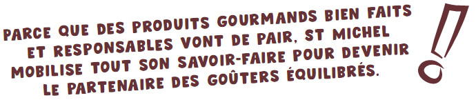 St Michel multiplie également les efforts autour de la Charte des Bons Goûters, en proposant plusieurs recommandations imprimées sur pack, à la portée des parents comme des enfants : la sensibilisation à la notion de portions, une proposition de goûters équilibrés, l’encouragement à la pratique d’une activité physique… La biscuiterie St Michel place au centre de ses préoccupations la responsabilisation de ses plus jeunes consommateurs pour allier plaisir et santé.