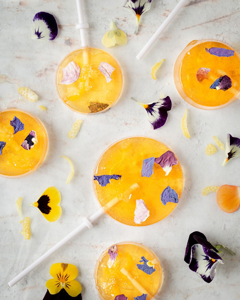 Sucettes au miel de tilleul, fleurs, citron et gingembre