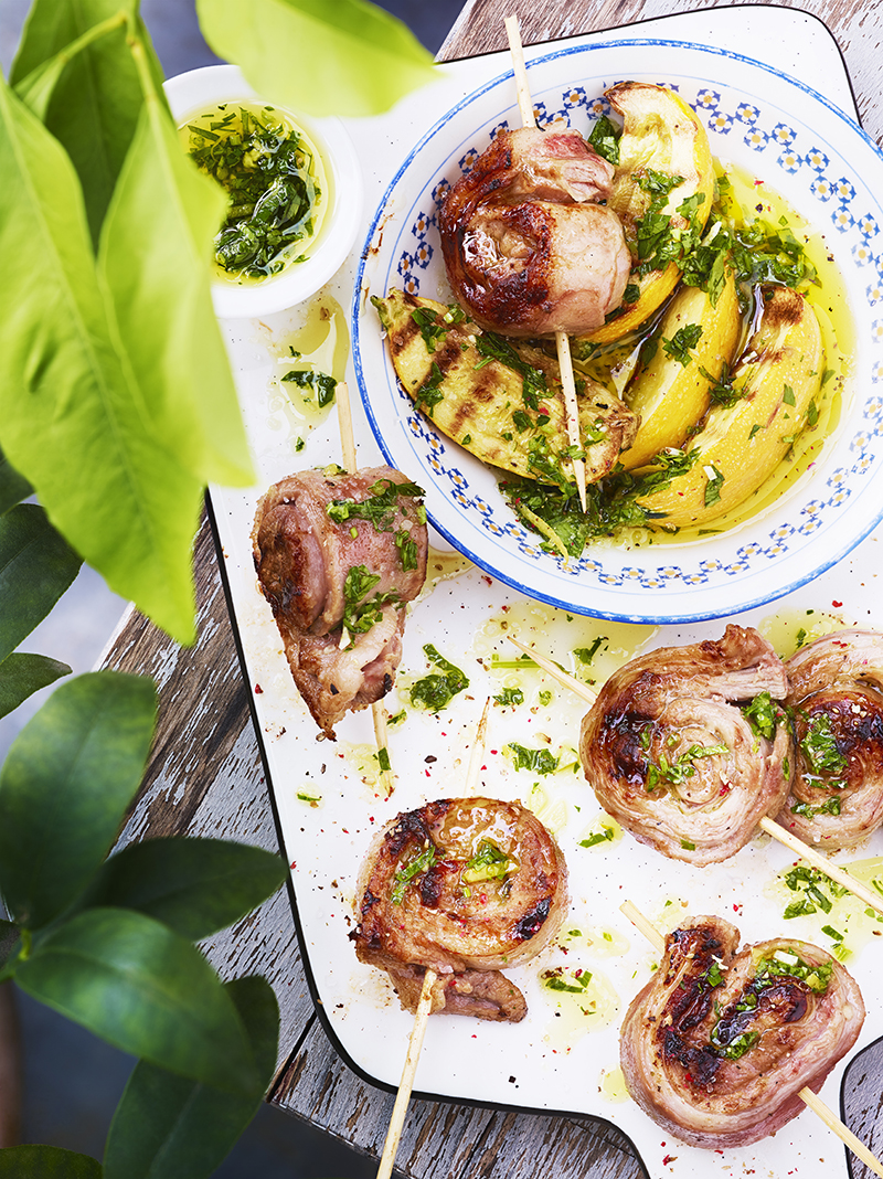 ③• Faire griller les roulades de poitrine au barbecue pendant 5 min de chaque côté.
