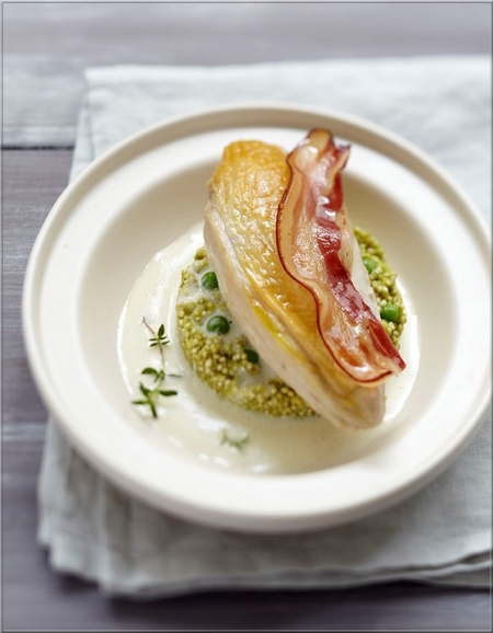 Suprême de Pintadeau Muscadet en Carbonara, Quinoa Printanier