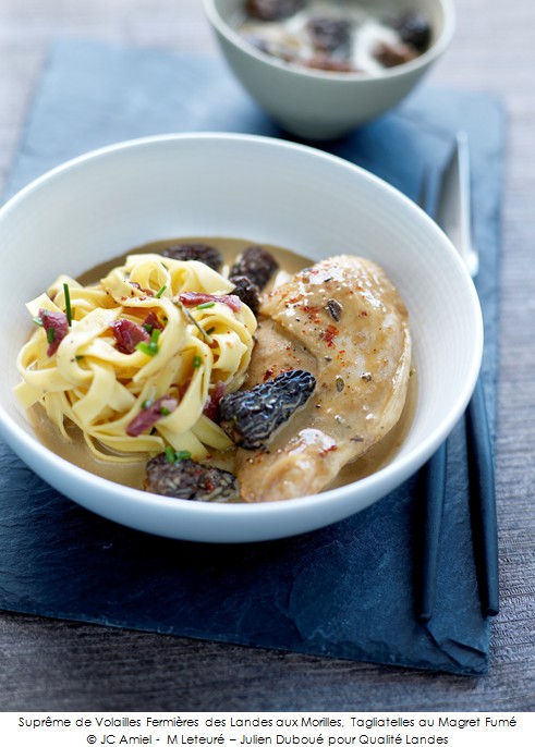 Suprême de Volailles Fermières des Landes aux Morilles, Tagliatelles au Magret Fumé