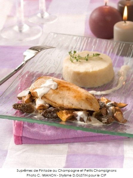 Suprêmes de Pintade au Champagne et Petits Champignons