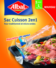 Numéro un du marché des Sacs Cuisson, Albal complète sa gamme avec une innovation qui va faire date : le Sac Cuisson 2 en 1 pour four traditionnel et micro-ondes. Pratique et facile à utiliser au quotidien, il garantit une cuisine saine et savoureuse : pas besoin d’ajouter de matière grasse, les aliments cuisent dans leur jus, de façon homogène, en conservant toutes leurs saveurs. En plus, inutile de nettoyer le four et de récurer le plat après cuisson… tout est impeccable !