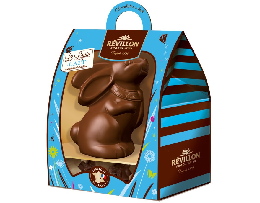 Décliné en chocolat au lait fondant et en chocolat noir intense, le moulage lapin est accompagné d’un délicieux assortiment de petits lapins aux éclats de crêpe croustillante plus gourmands les uns que les autres.