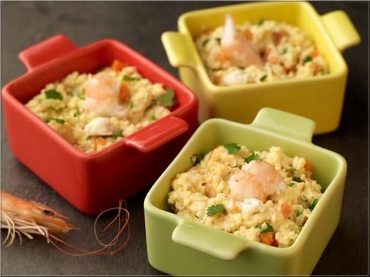 7• Dans un saladier, mettre la semoule de chou fleur, les crevettes et les dés de carotte.