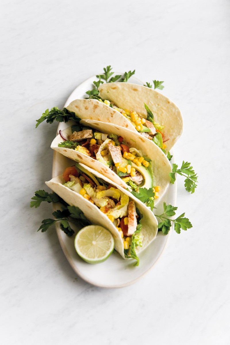 ③• Retirez du feu et coupez le poulet en lamelles. Dans un grand saladier, mélangez tous les ingrédients, salez, poivrez, arrosez de jus de citron vert et d’un filet d’huile d’olive.