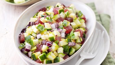 Rouleau de concombre au crabe menthe, fromage frais, noix