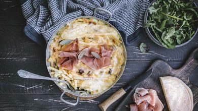 Mac and cheese façon tartiflette et jambon cru Aoste