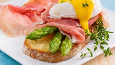 Œufs Bénédicte, asperges vertes et Jambon de Parme