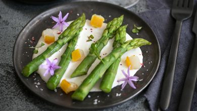 Cocotte de veau aux asperges vertes, crème parfumée à l’anis vert et fenouil sauvage
