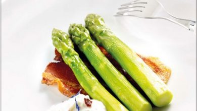 Asperges Vertes sur Craquants de Poitrine et sa Chantilly de Reblochon