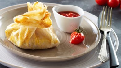 Aumônière, Tomme à la Truffe d’été, poire, Jambon de Savoie