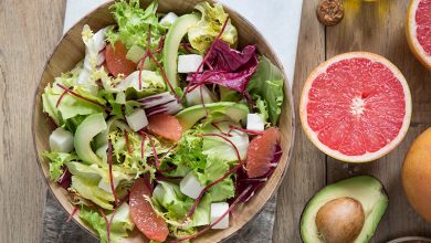 Salade Trésor Inca, crevettes, avocat et pamplemousse