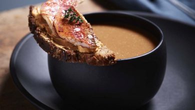 Tartine aux 5 céréales et rouget, soupe de poisson