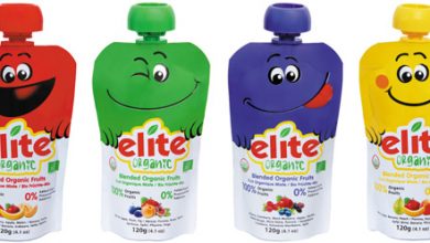 Découvrez les délicieuses purées de fruits bio Elite Organic dans des gourdes rigolotes