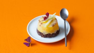 Biscuit Citron, Gelée au Café Cardamome et Fine Feuille de Lait en Poudre à l’Eau de Fleur d’Oranger