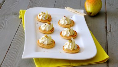 Blinis à la mousse de Société® à Tartiner, poires et pistaches